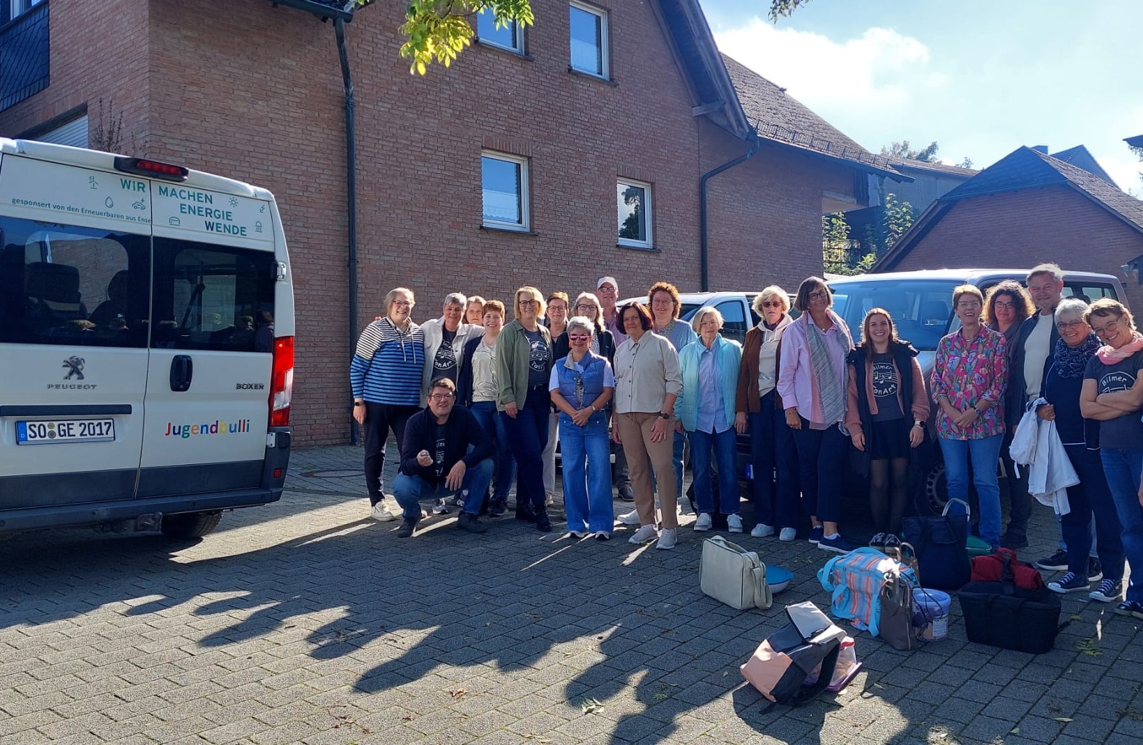 26.04.2024 In bester Laune brachen gut 15 Frauen der Stimmen Sopran und Alt zu ihrer diesjährigen Wanderung auf. Erste flüssige Verpflegung gab es am Startpunkt bei Susi in Niederense. Der Spaziergang durch die schönen Felder mit atemberaubenden Ausblicken auf Ense führte uns zu einem ersten Stopp bei Stephan, der uns mit einem schön dekorierten Tisch in seiner Garage empfing – die Frauenwanderungen stehen schließlich bei den anderen Stimmen im Ruf, stets bei Regenwetter stattzufinden. Allerdings blieben wir diesmal zumindest äußerlich trocken. Gut gestärkt und von unnötigem Ballast entledigt, liefen wir über das Höinger Industriegebiet und wieder über Felder nach Parsit, wo es bei Sylvia erneut eine kleine Stärkung mit „Schuss“ gab. Die Alte Post erreichten wir mit 26-minütiger Verspätung und wurden von jenen Sängerinnen empfangen, die nicht mitwandern konnten. Das komplett renovierte Gasthaus gefiel allen überaus gut, und auch das Essen überzeugte uns. Mit schönen Gesprächen und heiteren Geschichten verbrachten wir den Abend, bis der „harte Kern“ sich schließlich gegen halb zwölf auflöste.