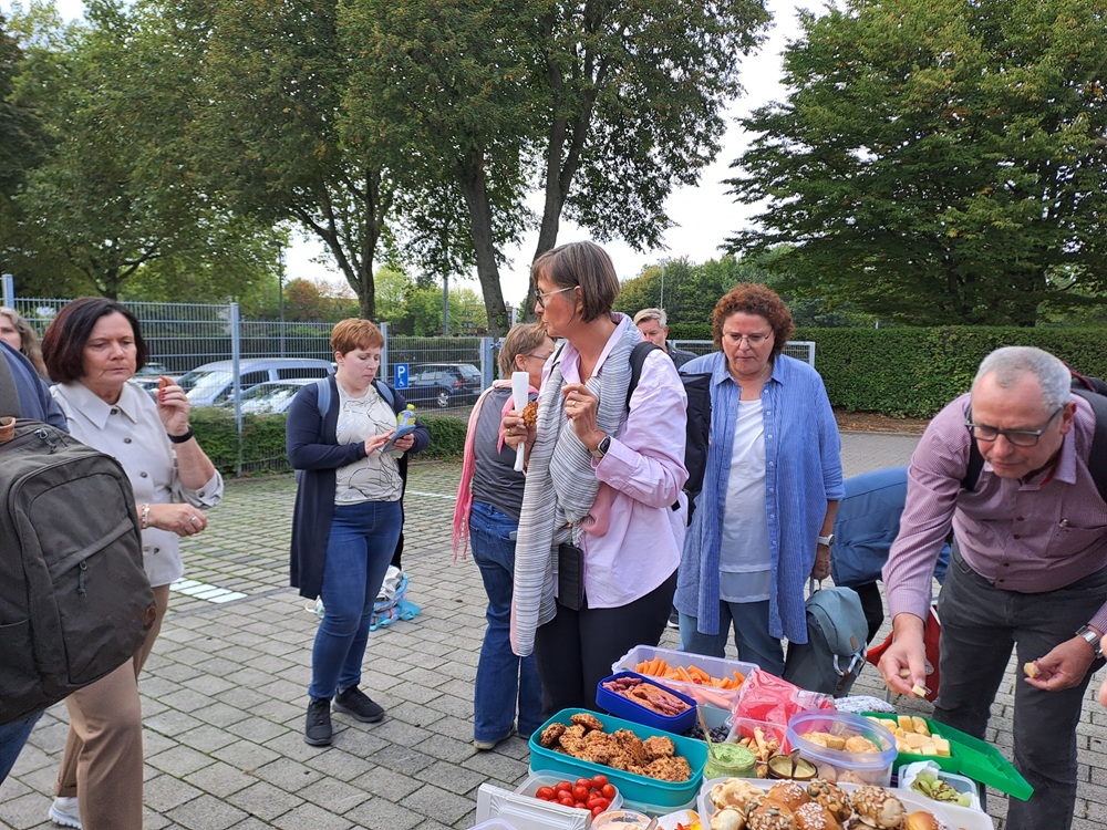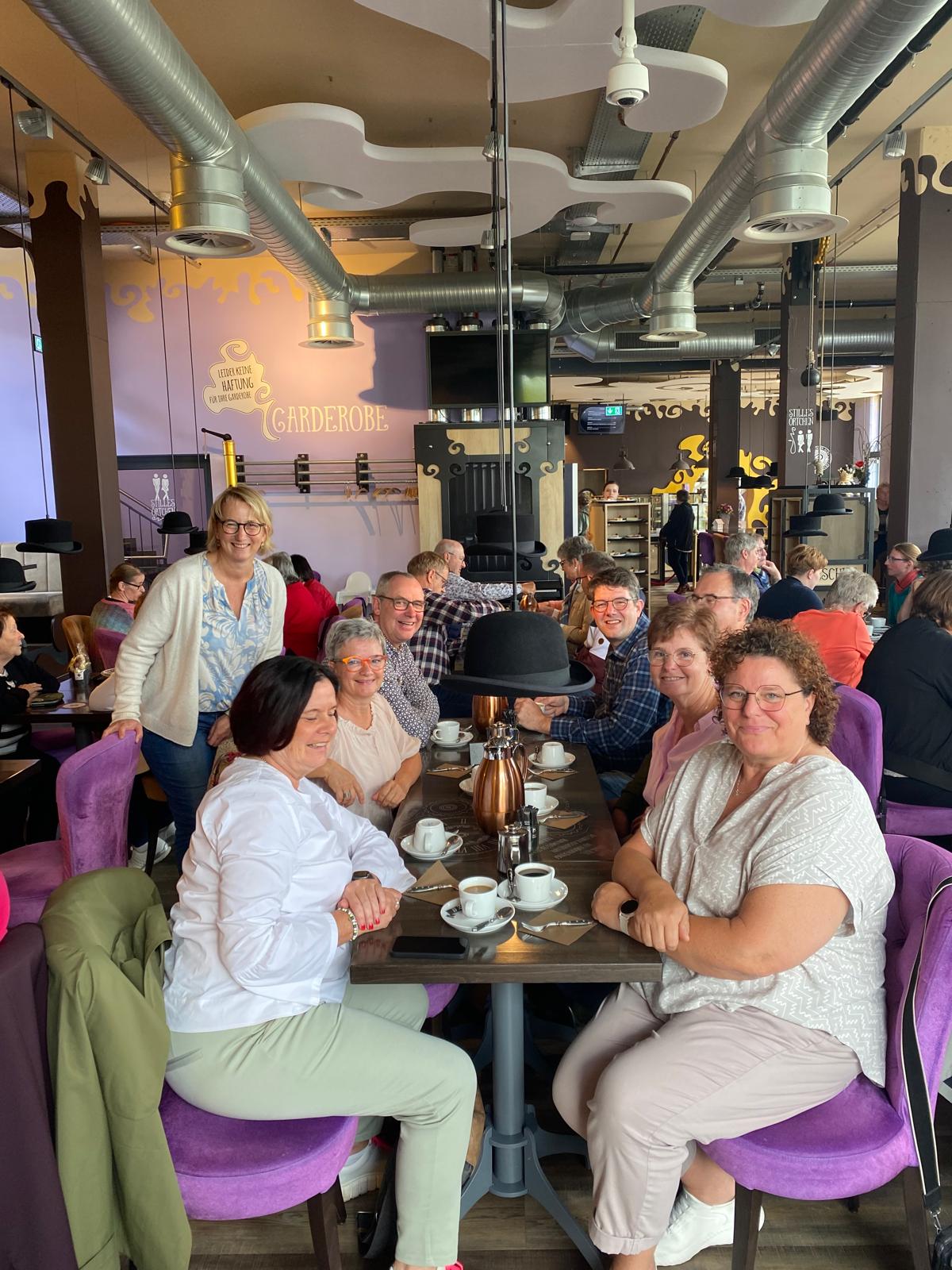 06.04.2024 Es war der erste „Sommertag“ des Jahres – und der kam gerade richtig für unseren Vorstandsausflug nach Unna, der gleichzeitig ein Abschiedsgeschenk für Konny nach fast 20 Jahren unermüdlicher Vorstandsarbeit und neun Jahren als 1. Kassiererin war. Mit dem Zug „reisten“ wir nach Unna, wo uns der unterhaltsame Stadtführer Peter Sauerland auf eine kulinarische Reise durch die gut 1.200 Jahre alte Stadt mitnahm. Wir ließen uns allerhand Leckereien von Bruschetta über verschiedene Senfsorten sowie Thüringer Currywurst bis hin zu Kuchen und schließlich Bier in der Lindenbrauerei schmecken und genossen dabei, uns endlich mal wieder entspannt draußen aufzuhalten. Nach einem würdigen Abschluss mit vielen guten Gesprächen und leckerem Essen bei dem Italiener Oller Kotten machten wir uns gut gelaunt auf den Heimweg.