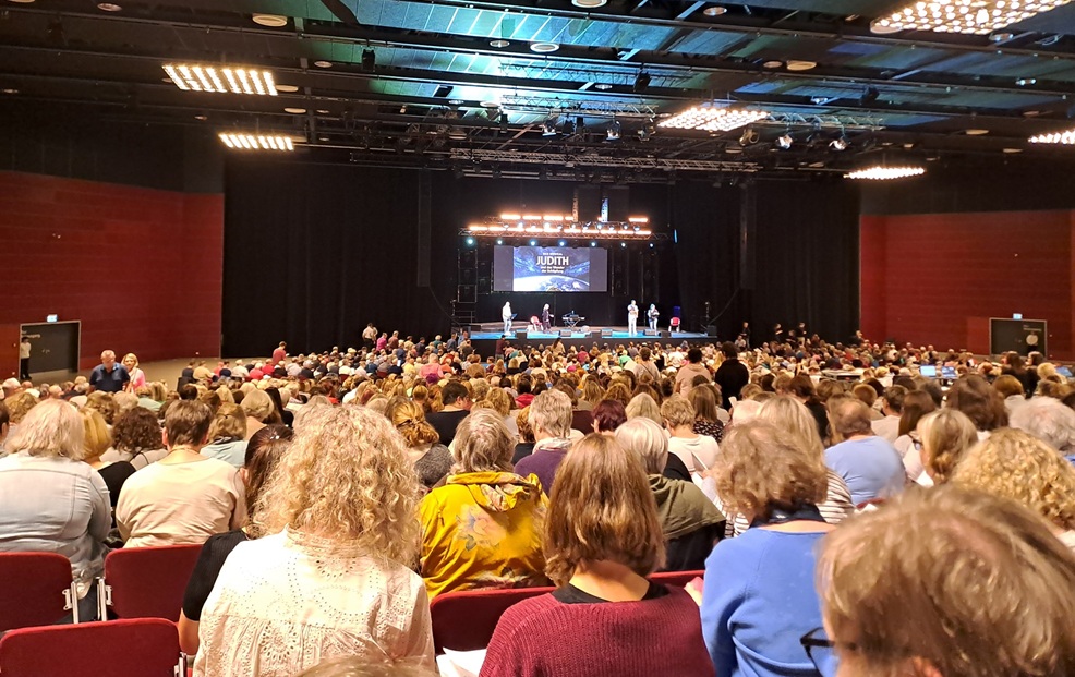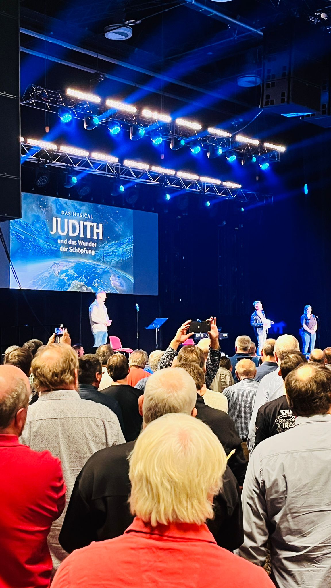 28.09.2025 Wie fühlt es sich an mit 2.500 Sängerinnen und Sängern gemeinsam zu singen? Oder zusammen mit Musical-Profis zu proben? Mit Worten schwer zu beschreiben – einfach Gänsehaut rauf und runter, und viele Male feuchte Augen vor Freude. Wir hatten uns alle nur schwer vorstellen können, wie die erste gemeinsame Probe zum Musical „Judith und das Wunder der Schöpfung“ (der Titel des Musicals wurde jüngst geändert) verlaufen würde. Umso bewegter waren wir, als wir mit drei Bullis und einigen Pkw am RuhrCongress in Bochum ankamen und nach dem Einlass die ersten gemeinsamen Töne erklangen. Die Dirigenten Miriam Schäfer und Roland Orthaus teilten sich das Dirigat und konnten uns von der ersten Sekunde an begeistern und mitreißen. Und wir alle spürten plötzlich, wie groß dieses Projekt mit Teilnehmenden aus ganz Nordrhein-Westfalen, über alle Generationen und persönliche Hintergründe hinweg wirklich ist!