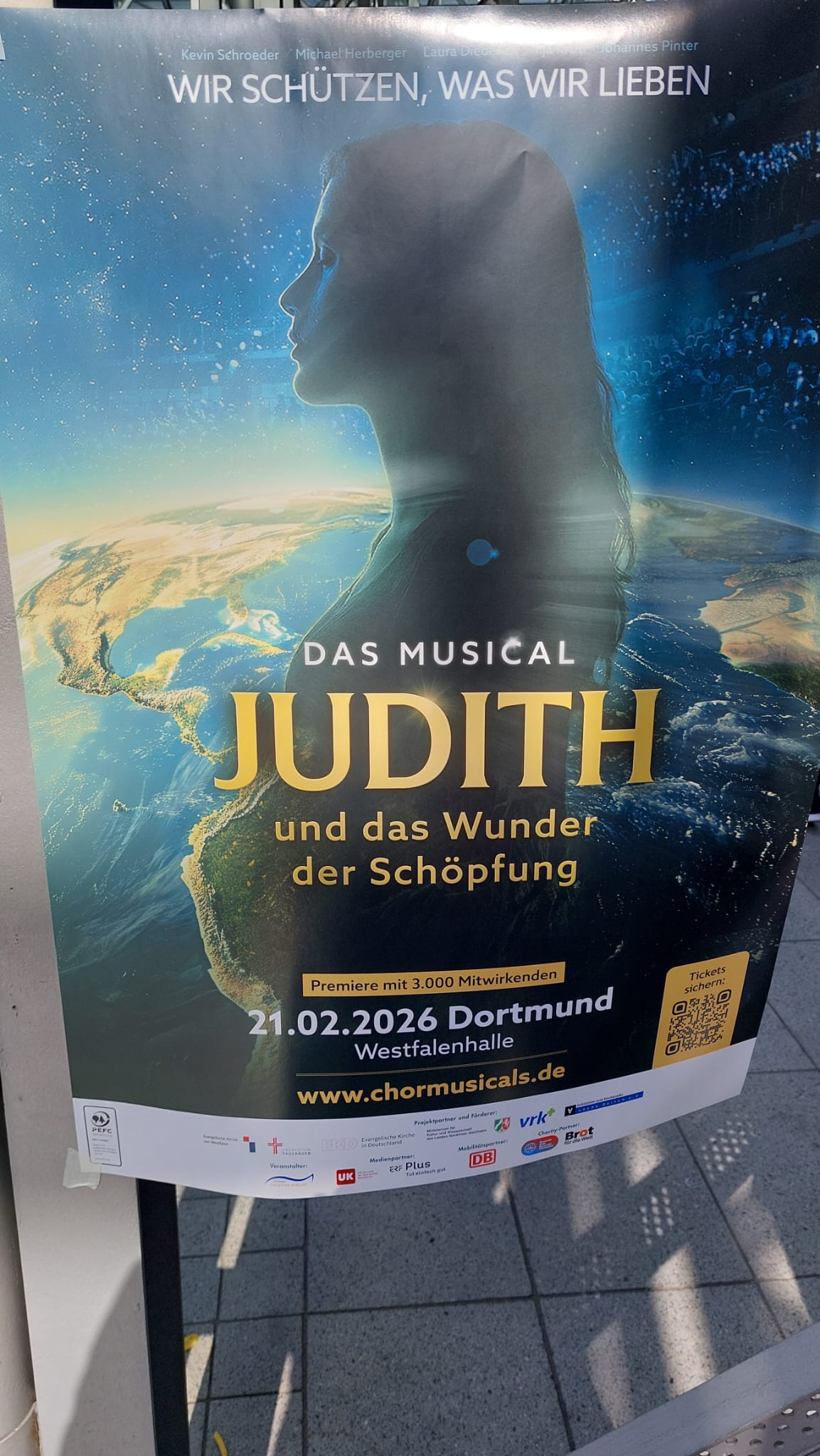 21. Februar 2026, 14 und 19 Uhr Premiere-Vorstellungen in der Westfalenhalle Dortmund. Schaut gerne schon mal in den Trailer unter: Judith und das Wunder der Schöpfung | Jetzt Tickets sichern für die Premiere in Dortmund 2026